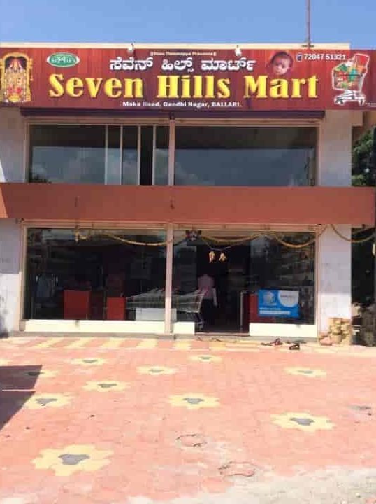 Seven Hills Mart is conveniently situated at 34123, 2nd Cross Rd, beside moksha sweet stal, KHB Colony, Tekur Compound, Gandhi Nagar, Ballari, Karnataka 583103, India. This central location makes it easily accessible for shoppers in the area.